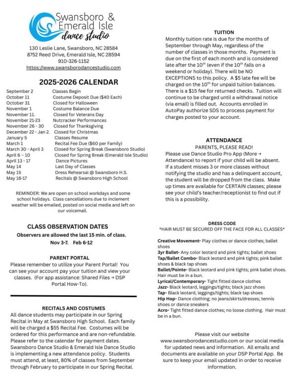 Swansboro Dance Studio, Swansboro, NC 28584 910-326-1152 - swansborodance@gmail.com